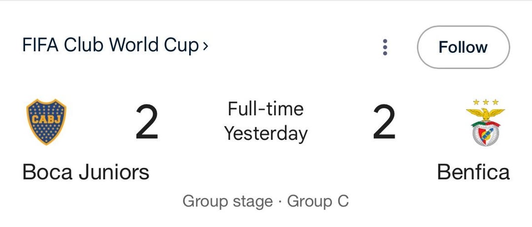 So whoever wins higher vs auckland between benfica and boca will get through. Such a weird thing