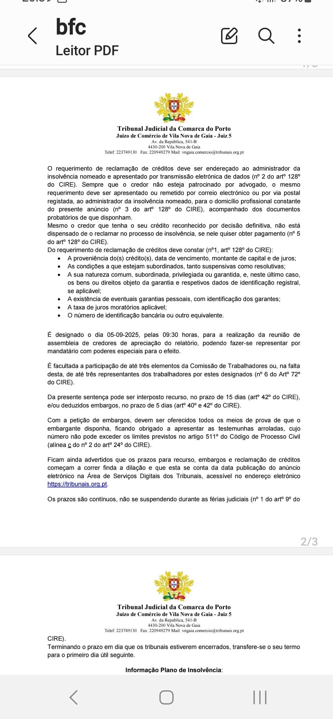 Nos próximos 15 dias, pode existir recurso, que sinceramente, não acredito que aconteça. A 5 de setembro, é a reunião de credores, o **nosso dia D.**