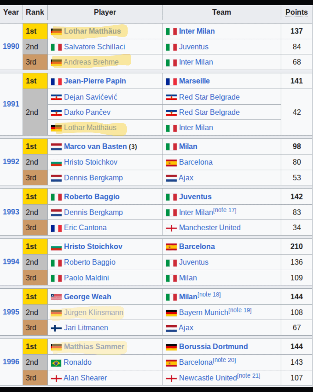 Bayern won the CL once and was 2 twice in the finals, we were the most exciting team in Europe and the national team won in Brazil. Like in 1990 and 1996 Lodda and Sammer.