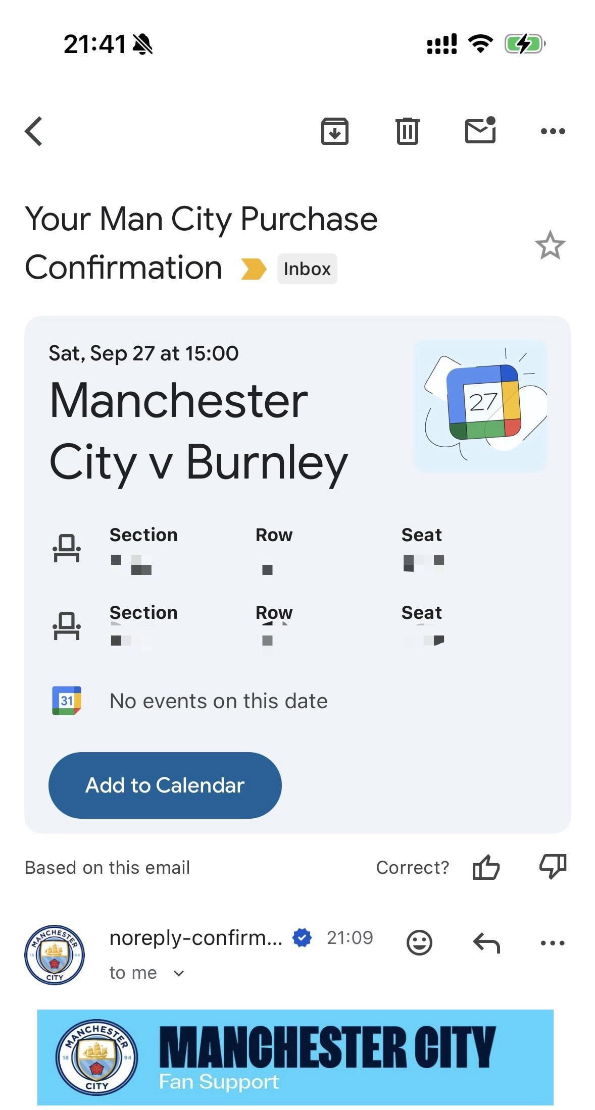 Thank you to all the MCFC fans for the advice in buying the tickets! We successfully bought 2 tickets and will be coming from Hong Kong to watch the game against Burnley! 🤩