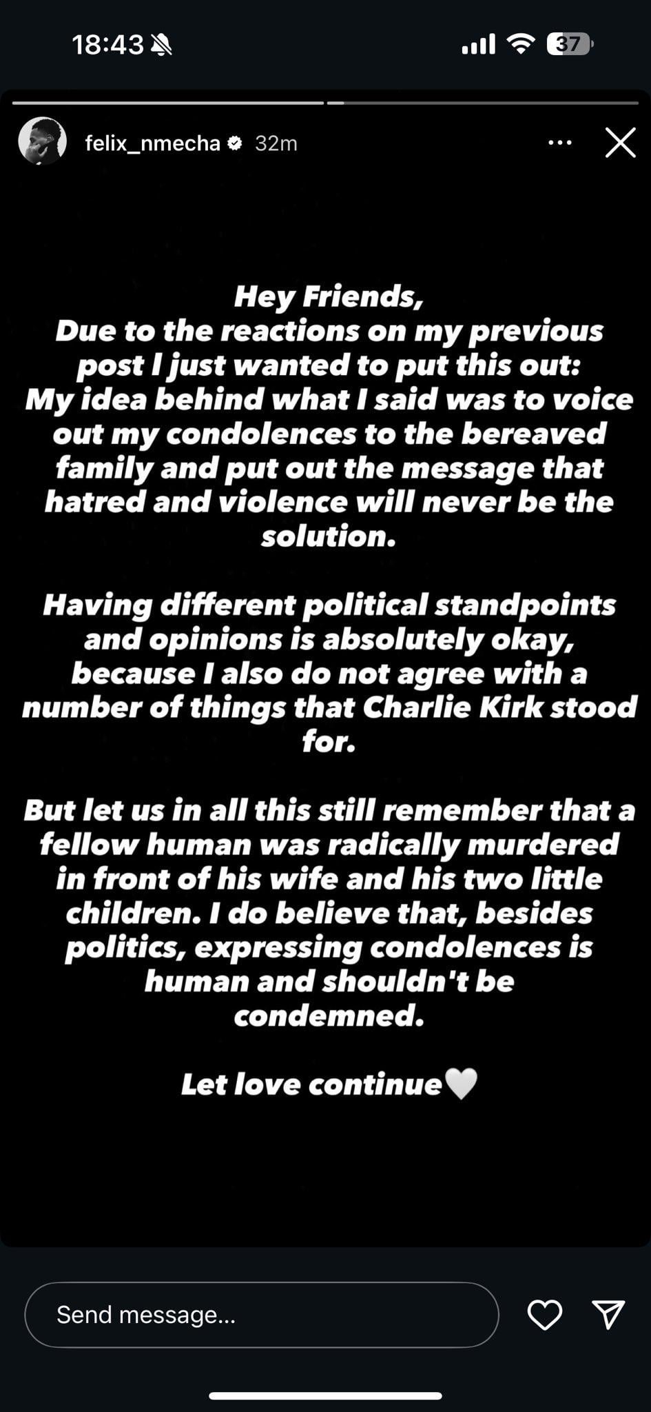 Kirk was a white supremacist, I already knew Nmecha’s views but I don’t get posting about a guy who’d still want him to be a lesser citizen.