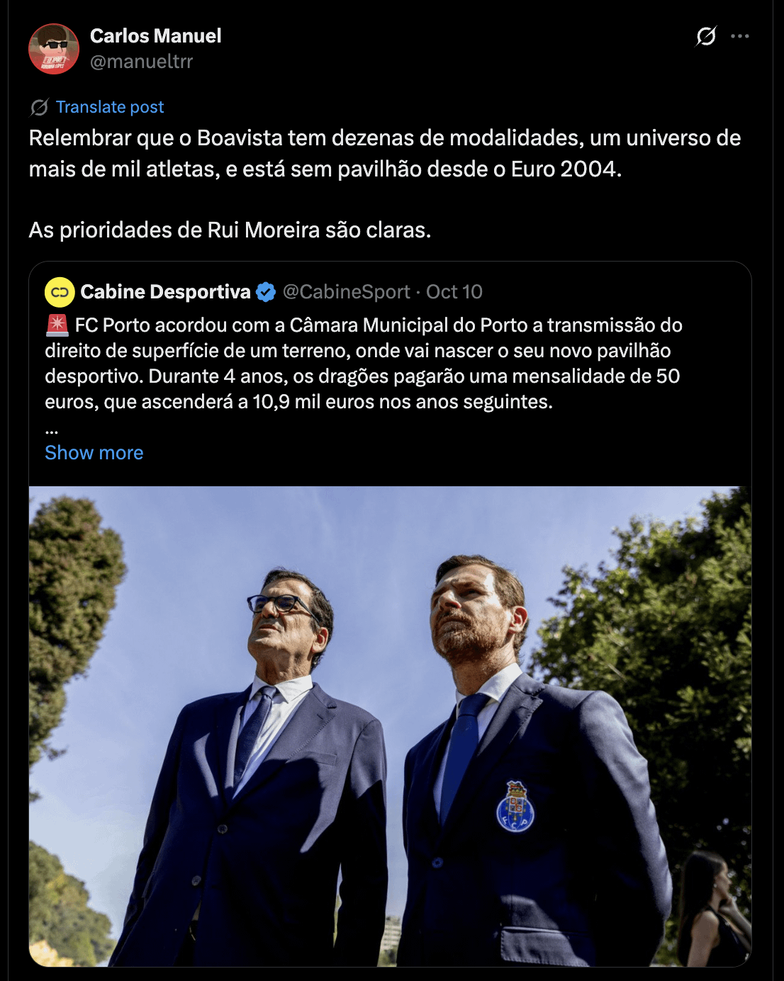 2. Este post apareceu-me, sou portista e não boavisteiro, mas gostava de saber: o Boavista tentou sequer fazer algum negócio do género com a Câmara entre o início do mandato do Rui Moreira e o momento financeiro atual? Não nos podemos esquecer que a câmara já transformou o campo do Sporting da Cruz num estádio municipal, que está a ser construído o novo Campo Municipal de Campanhã para o CD Portugal e que a CM tem no PDM a construção de um campo a ser cedido ao Salgueiros em Arca d’Água.