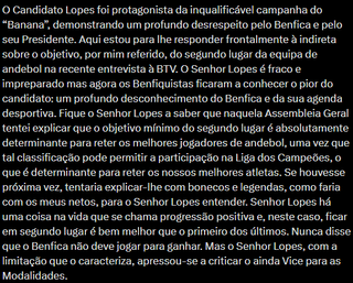 Caro Noronha Lopes, se estiver a ler isto, os meus 20 votos são seus. Não se deixe abater! Carrega Benfica