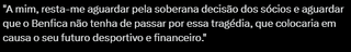 O que me “assusta” nisto, é as consequências deste ato eleitoral no futuro do Benfica, e a constante destabilizaçao que vai trazer nos proximos tempos, tanto à equipa, como ao ecossistema do clube, independentemente de quem ganha.