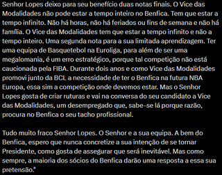 o parágrafo em que o Fernando Tavares fala da EL e da FIBA/NBA EU é no mínimo de quem não tem sensibilidade para assumir a posição que teve.