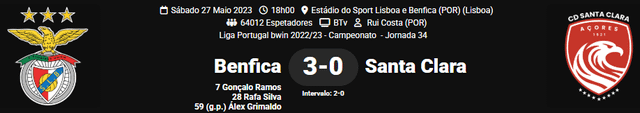 Se tivesse de escolher um 2º, o Benfica v Santa Clara (2023), especial por ser o primeiro que experienciei ao vivo na Luz e o primeiro onde fui praticamente a todos os jogos em casa no campeonato (exceção sendo o jogo contra o Famalicão)