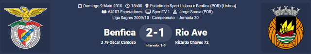 Lembro-me perfeitamente do jogo contra o Boavista, como foi o meu primeiro é o que tenho melhores recordações. Aquele mitico golo do Luisão contra o Sporting, que houve uma choradeira dos lagartos gigante por uma supostamente ser falta.