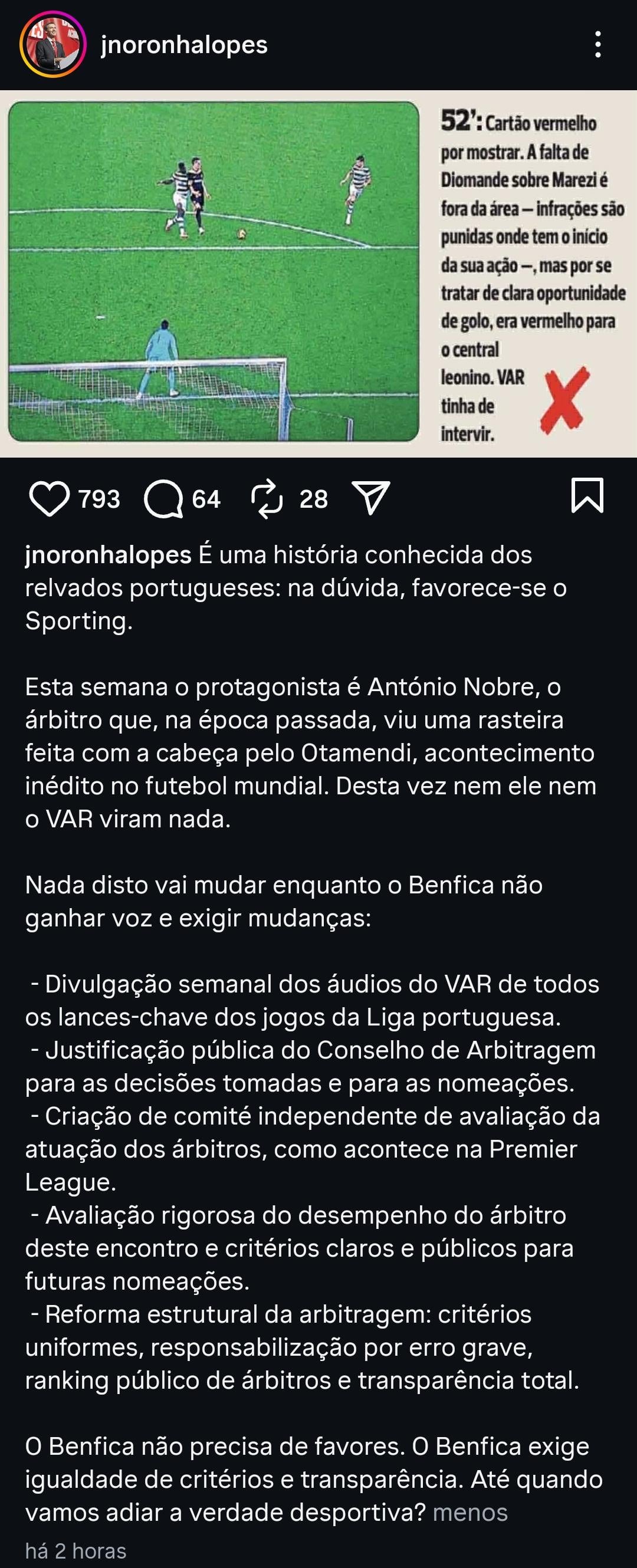 Lagartos no r/primeiraliga a espumar, mas o Noronha tem razão