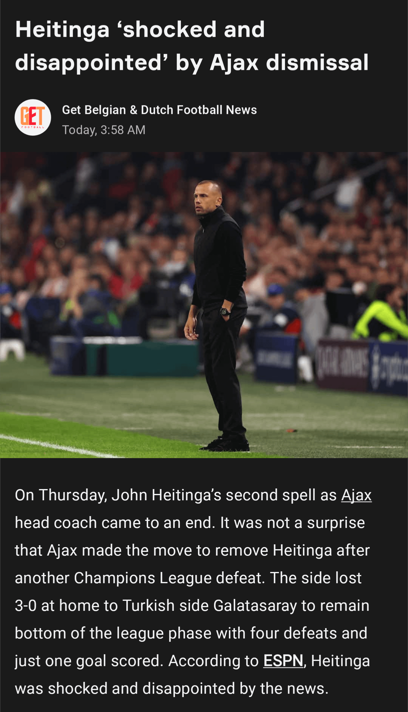 ZealousidealBaker945 on November 7, 2025 6:49 pm die gozer heeft zon plaat voor zn kop…. maar dat wisten we al toen hij na een vreselijk slechte periode als interim trainer eiste dat hij trainer mocht blijven lol, wat een lul!