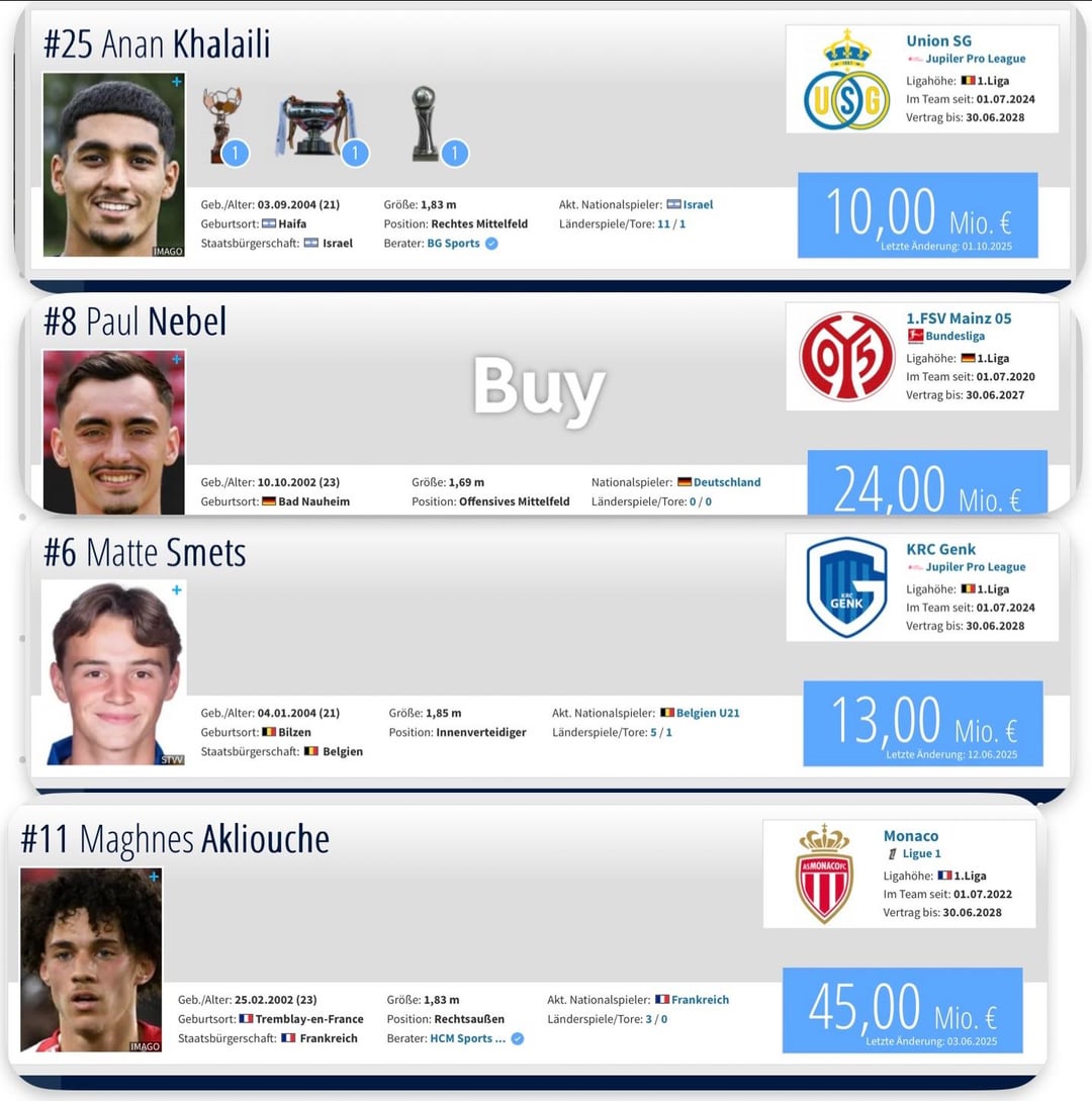 Timber is a good shout, Nebel would be one of those mid range Bundesliga signings no one would be happy about. Akliouche would be great but I feel we’ll be overloaded in attack with the young guys being brought up next season like Albert, Inacio and the arrival of Lerma.