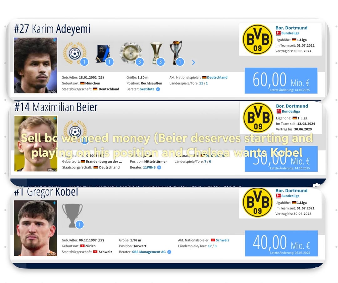 Anton and Couto aren’t going anywhere this summer for sure, Adeyemi wants to extend, Kobel we’ll have to see and same with Beier.