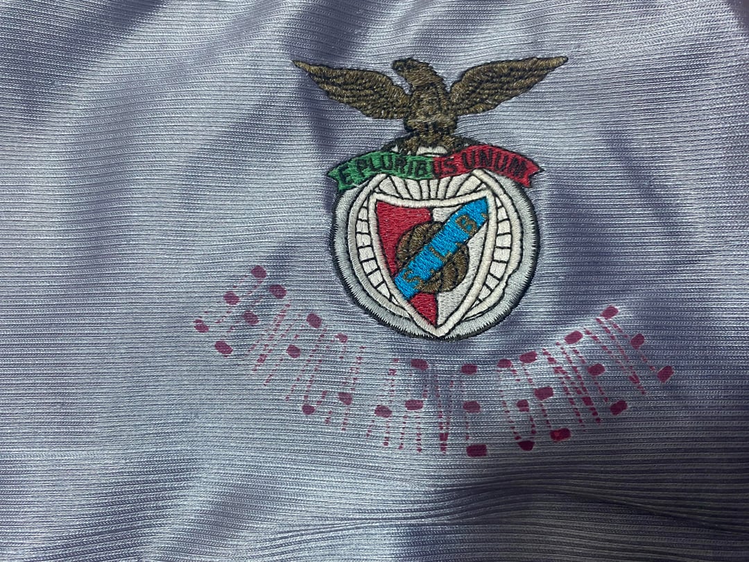 Acho que é da equipa de futebol da Casa do Benfica de Genebra. Há pouca informação online, mas há referências no zerozero tanto ao “Benfica Arve Geneve” como ao “Sport Geneve e Benfica”. Explica o patrocinador diferente.