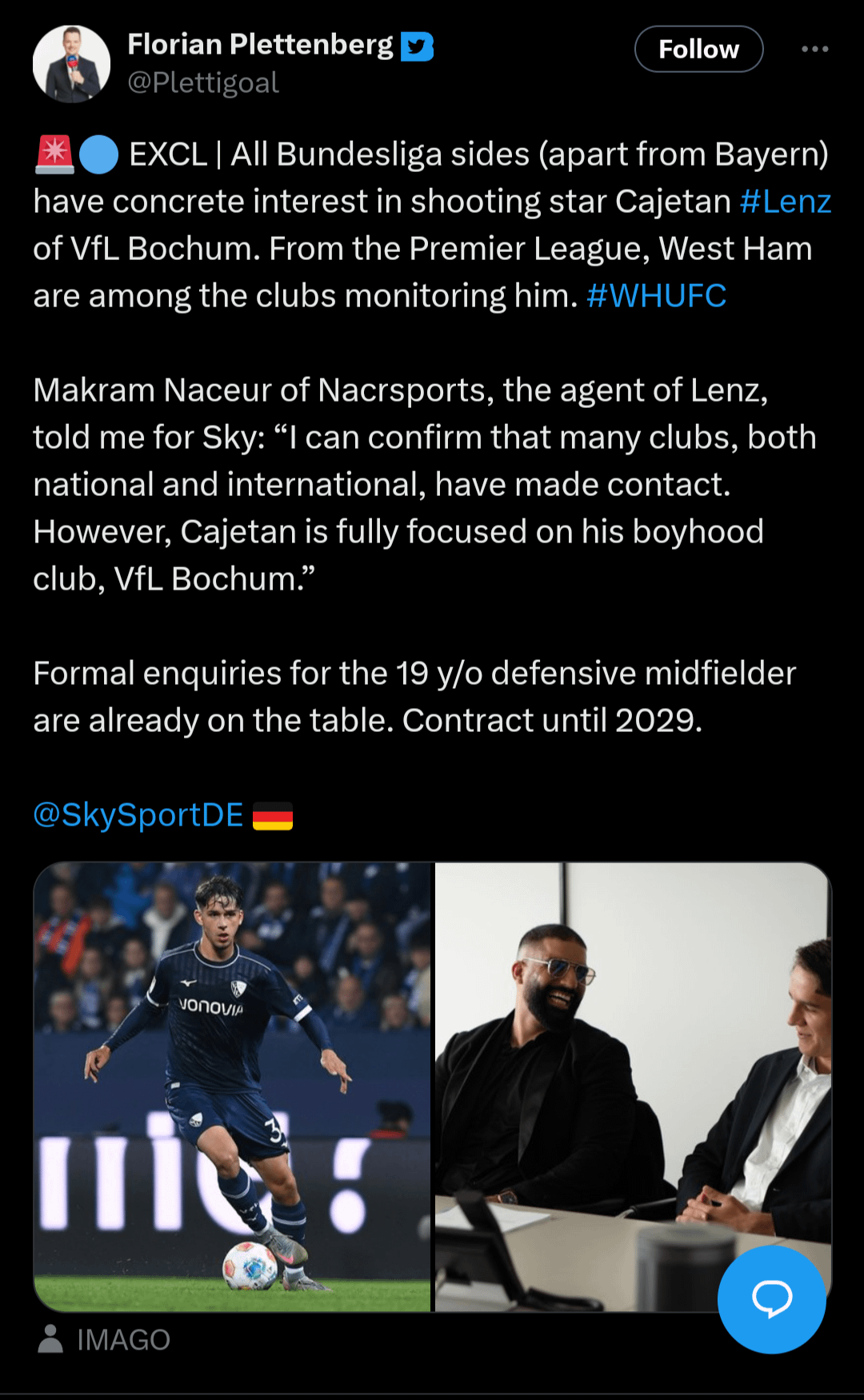 Lenz’s agent was just spotted in Frankfurt btw, while Leverkusen are seemingly on great terms with Bochum, they’ve transferred three talents between the clubs recently. Plus, well, it’d be Wätjen himself whom we ought to bring into the midfield rotation. He’s our player.
