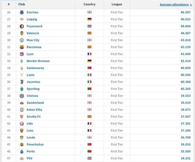 This is only relevant if you do it by stadium fill rate.