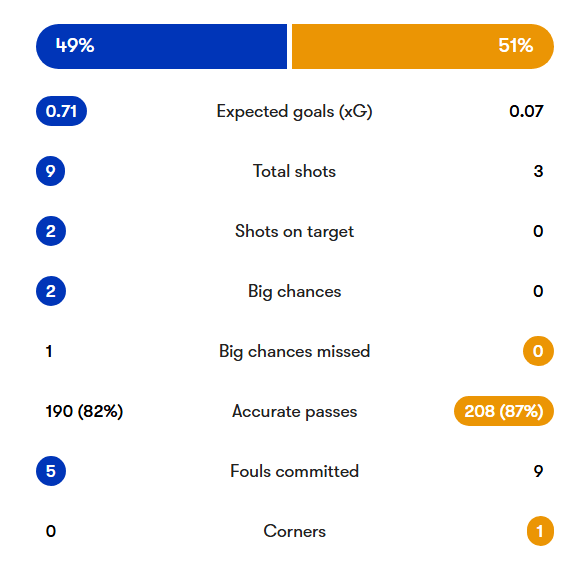 8’ – Grealish lays off to Armstrong, chips a cross in, defender heads away and it comes to Iroegbunam, but his volley is wayward. First shot of any kind for the Blues.
