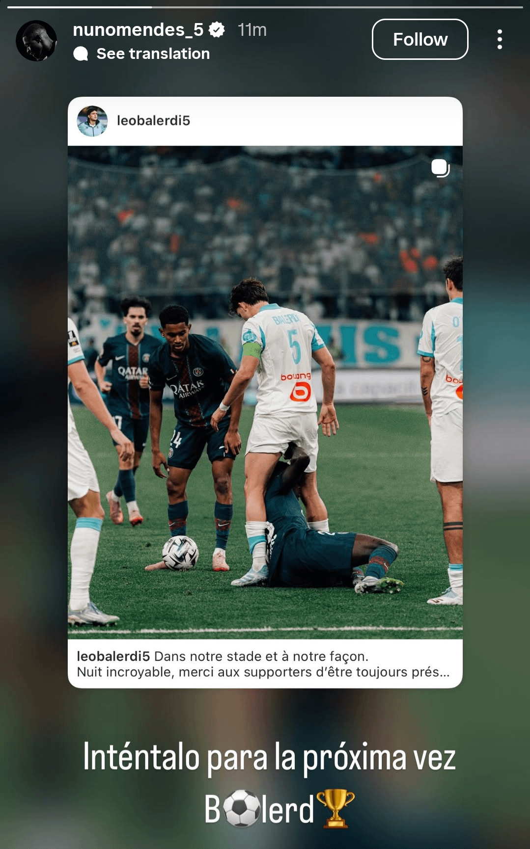 Nuno Mendes story on Instagram π