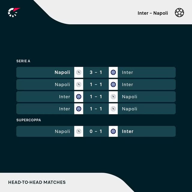 ⚔I precedenti non vanno a favore di nessuno: 1 Inter, 3 Pareggi, 1 Napoli