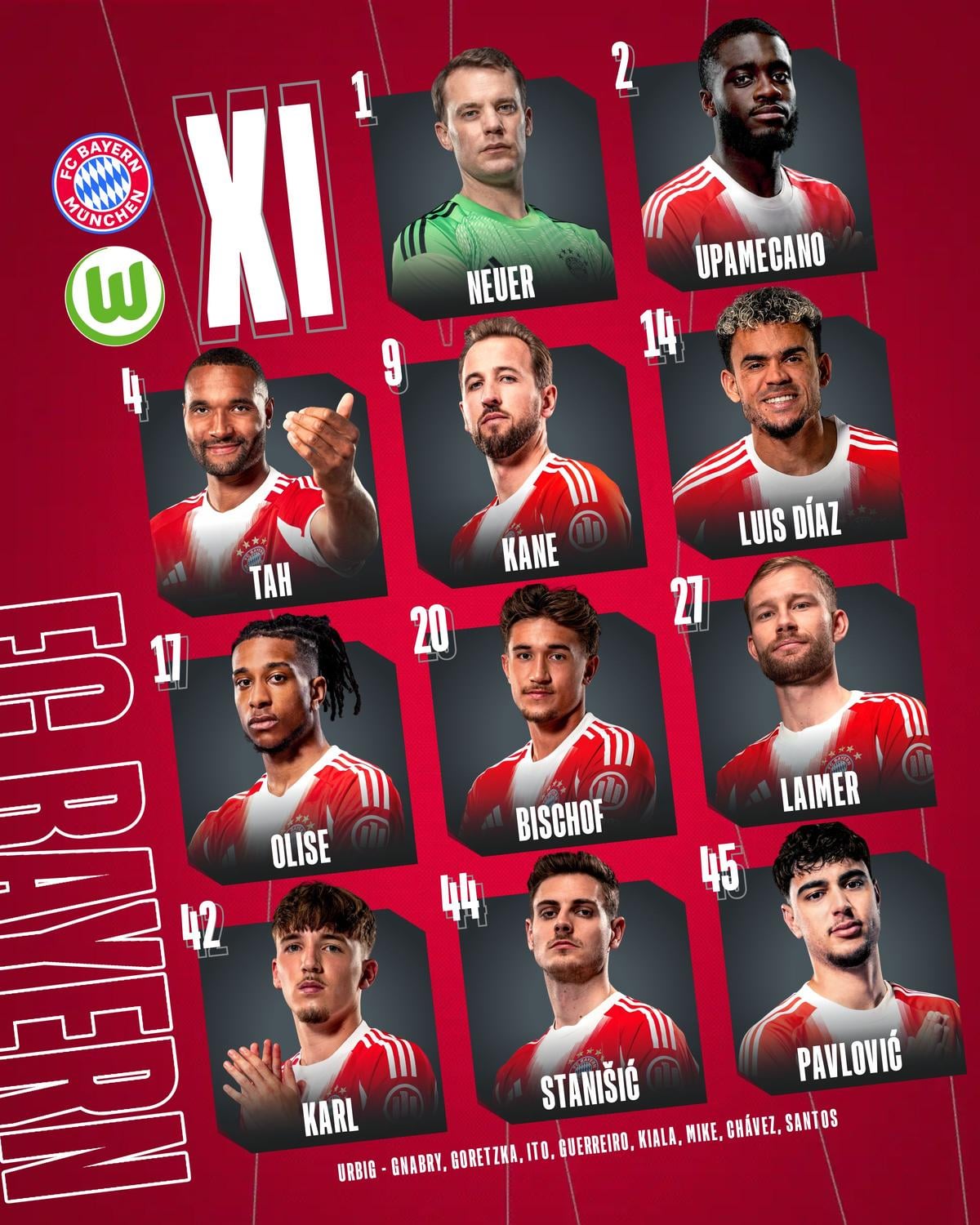 Share Facebook Twitter LinkedIn Pinterest Bluesky Threads Our Starting XI against Wolfsburg by julesvr5 FC Bayern Munich football fußball Germany Soccer