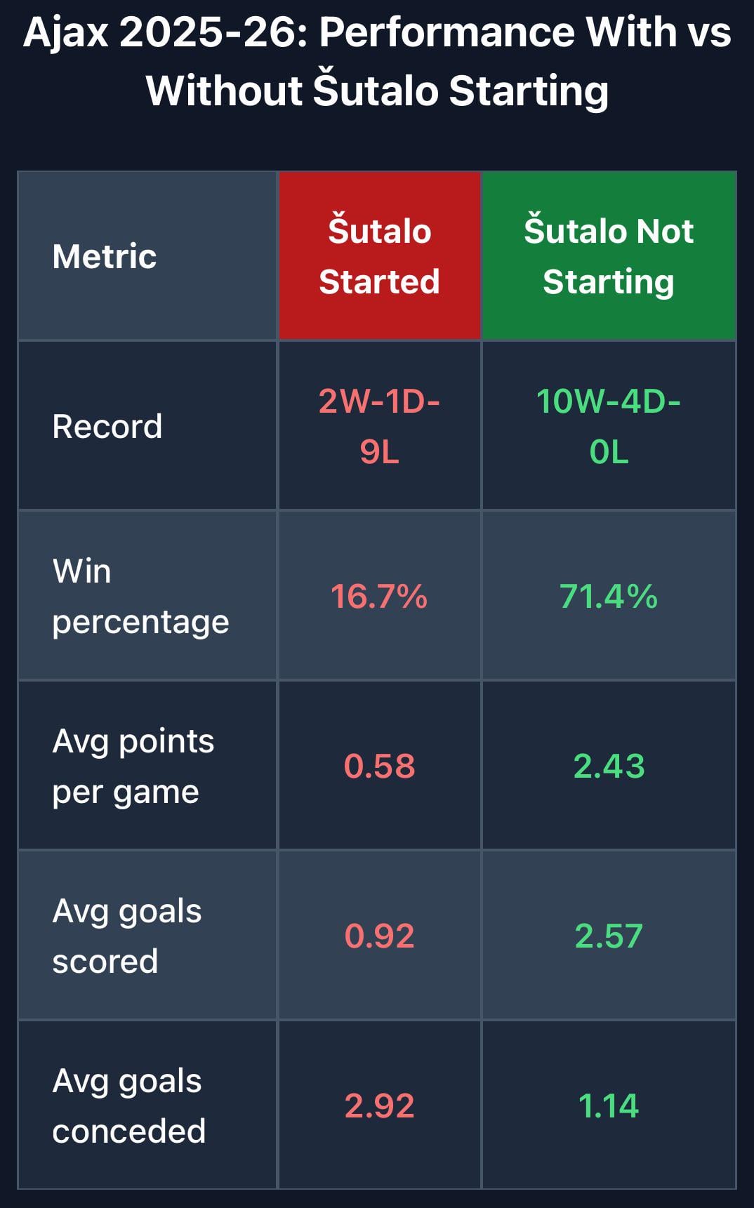 1. I’m curious to see how this table would look in the 23-24 and 24-25 season. Especially last season you actually had the idea Sutalo was living up to his expectations. But this season he’s been horrible indeed. What would be the specific reason to cause that? Is it the believe and relationship with the manager? Is it the presence of a leader, is it the defensive quality of the midfield? It looks like Sutalo is very sensitive regarding the mental aspect. If things don’t align he loses faith in his own quality and subsequently loses his quality.