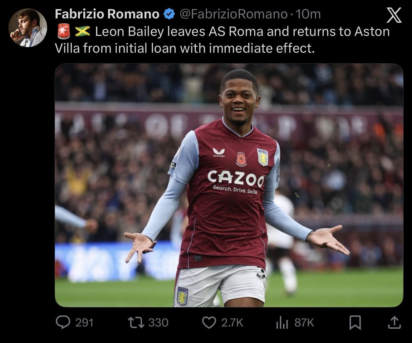 However Roma seem to want him gone (I suspect this might be linked to the other business too), and the cancelling of his loan means we now lose the loan fee and have to pick up his wages again…which might limit what we can do elsewhere