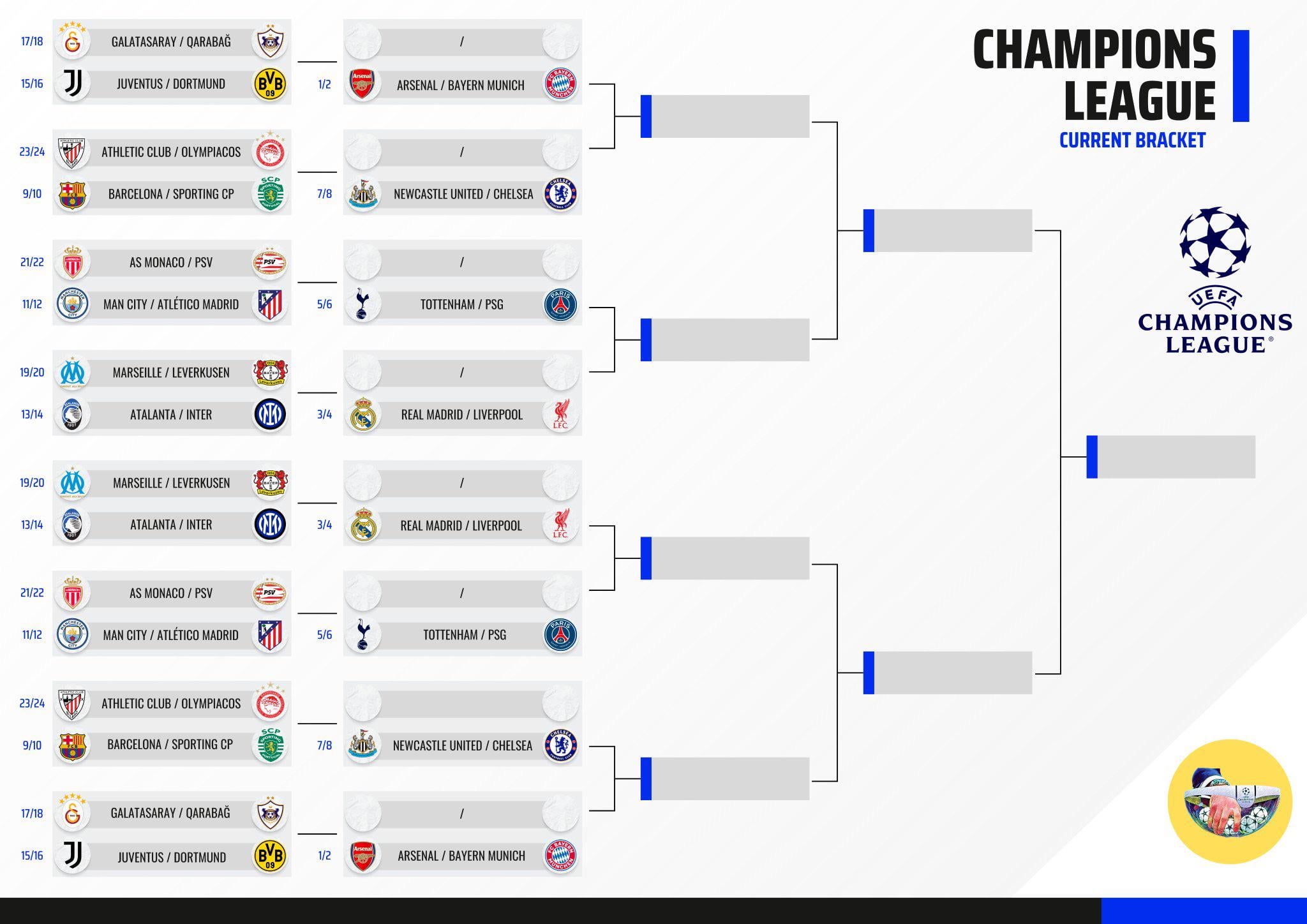 (Disclaimer) this bracket is from before the Benfica game and gameweek 8 they can still avoid Arsenal/Bayern side of the bracket if they win on gameweek 8 and other teams drop points