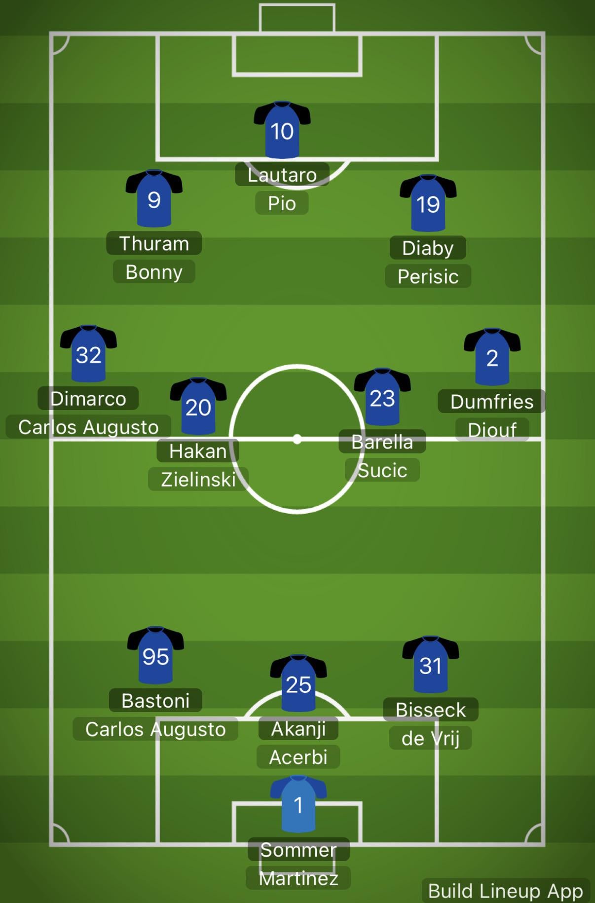 How about Perisic as Dimarco’s Deputy, Carlos at Vice-LCB, Diouf as Diaby’s Deputy and LH and The GOAT Darmian at RWB?