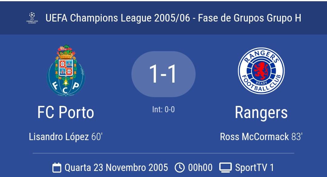 Em véspera do nosso Porto a receber o Rangers vamos relembrar o encontro contra os escoceses a contar para a Champions League na penúltima jornada onde acabou empatado