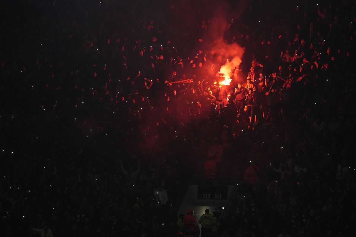 Images taken at the match show flares were let off by Galatasaray fans before the game kicked off, with smoke lingering above the pitch.