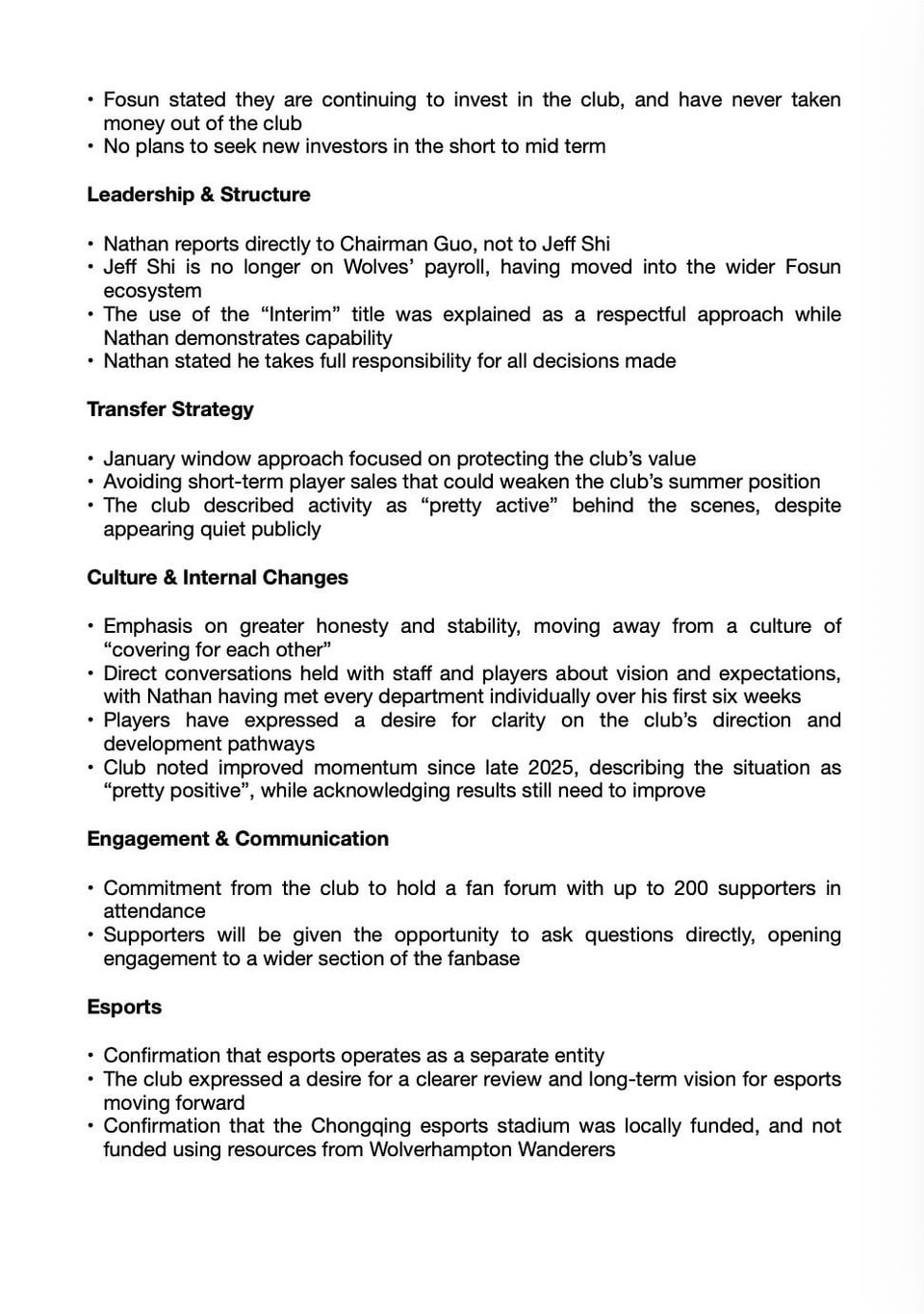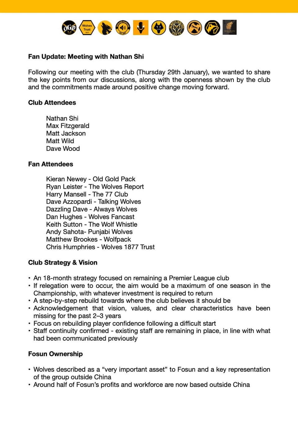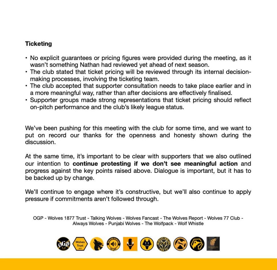 Share Facebook Twitter LinkedIn Pinterest Bluesky Threads Minutes from the fan groups meeting with Nathan Shi by tacitusvanderlinde wolverhampton wanderers Wolverhampton Wanderers Football Club