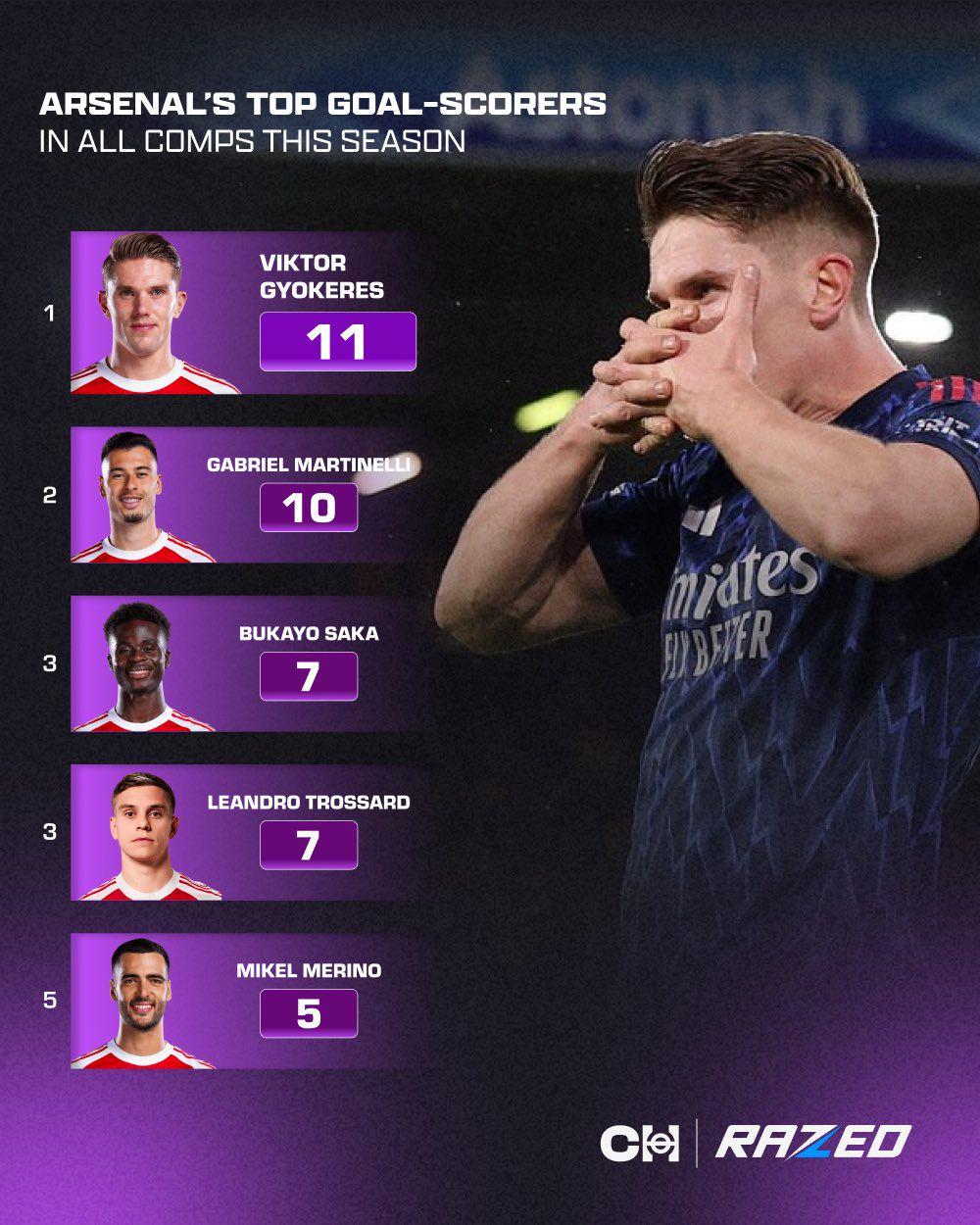 I said at the beginning of the season that I’d be happy with 20 g/a from Gyökeres in his first season, looks on track! How’s Sesko or Isak doing?