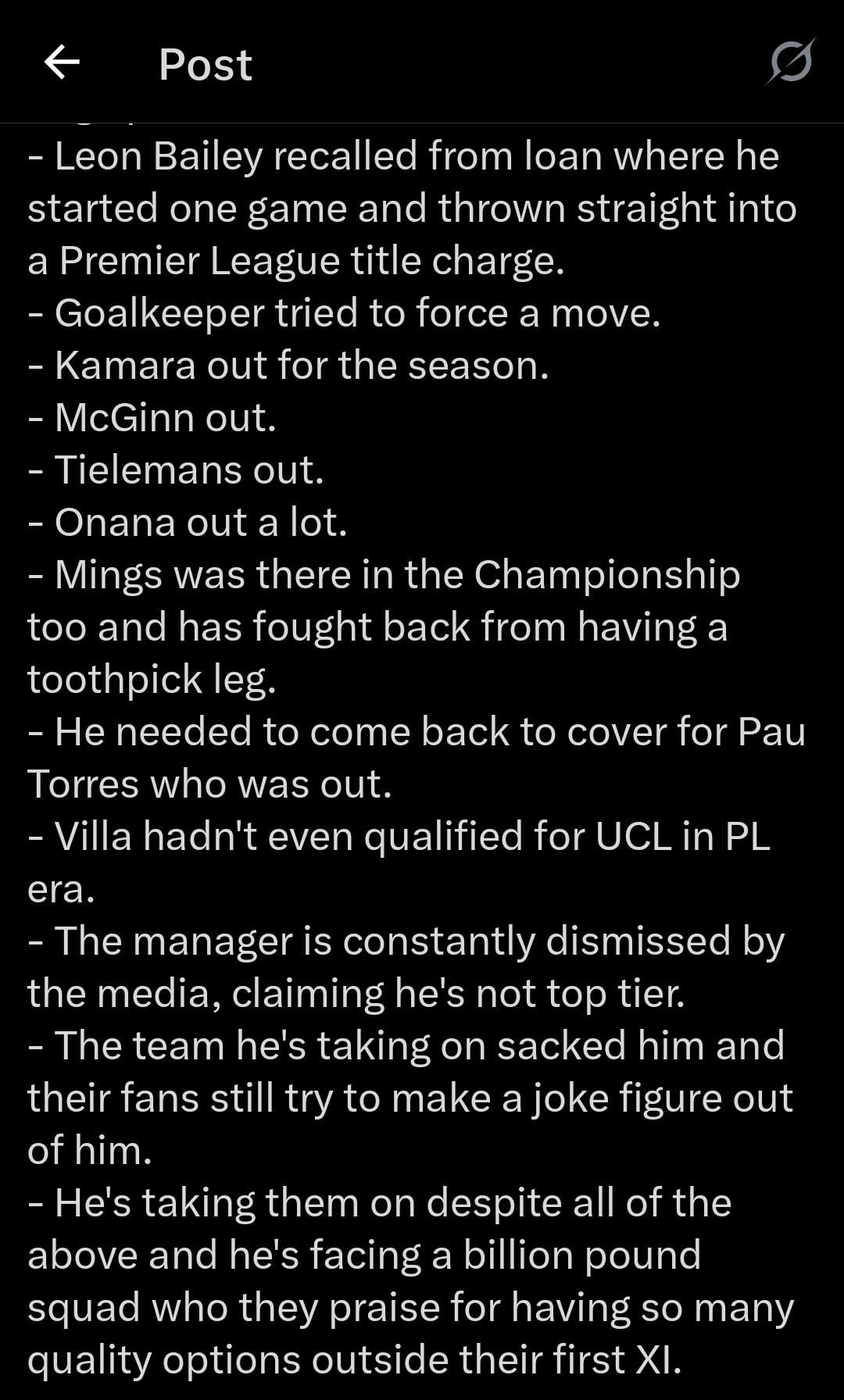 hes quoting a tweet by ‘the villa podcast’. thye are not damians own words