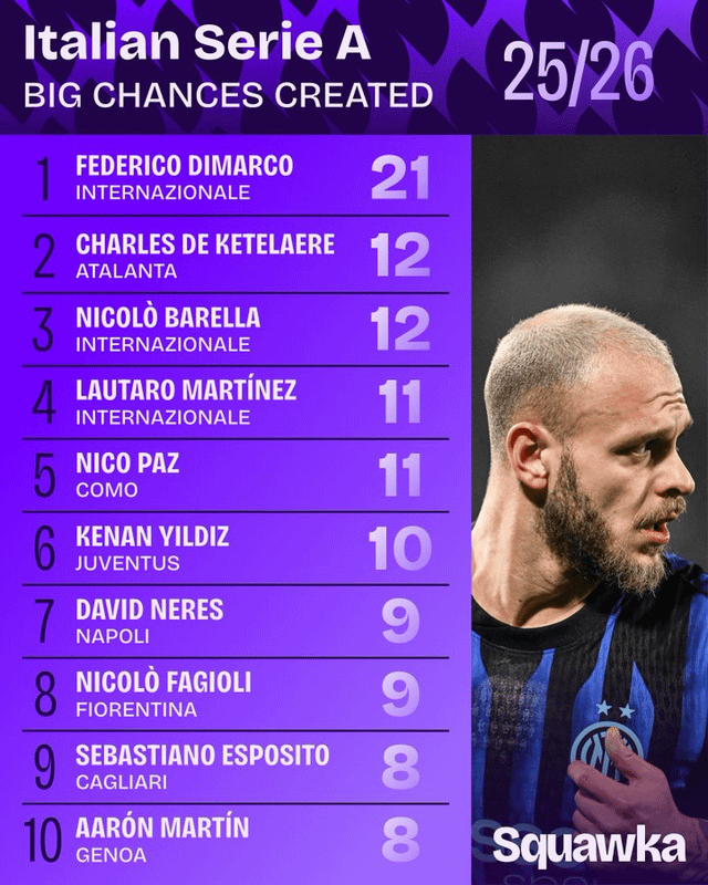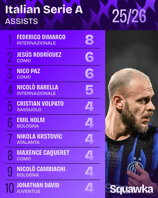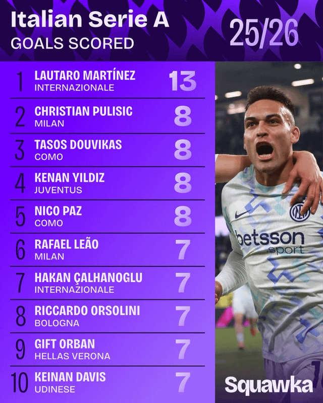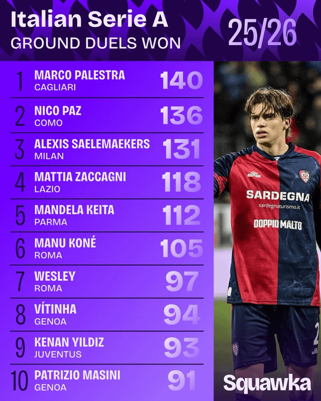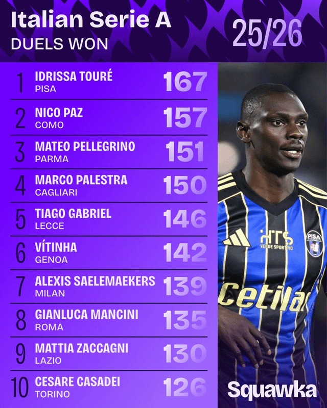 Share Facebook Twitter LinkedIn Pinterest Bluesky Threads Squawka Serie A Stat Leaders 2025/26 by mercurialsaliva football Italian Football Italian Football Championship Italy serie a Soccer