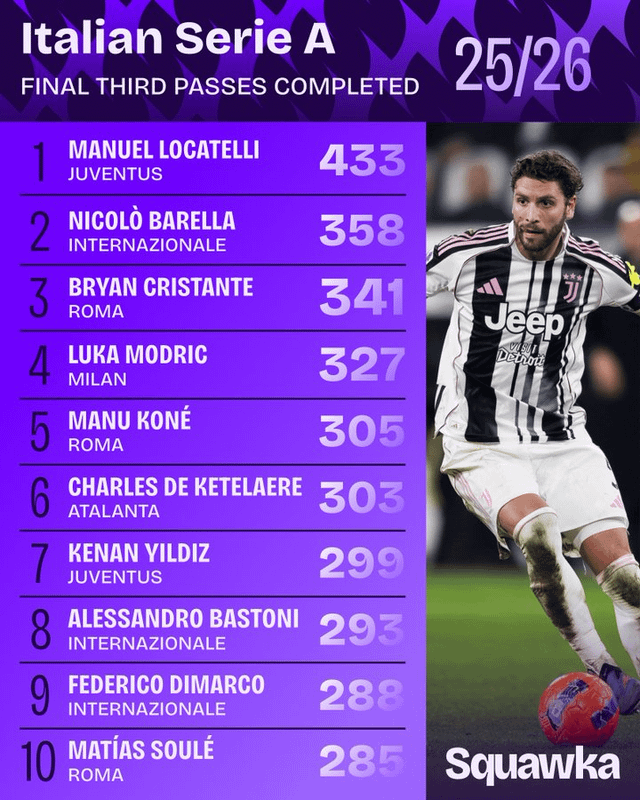 valendinosaurus on February 6, 2026 8:46 pm Bastoni in the top 10 of final third passes completed is insane