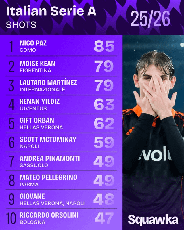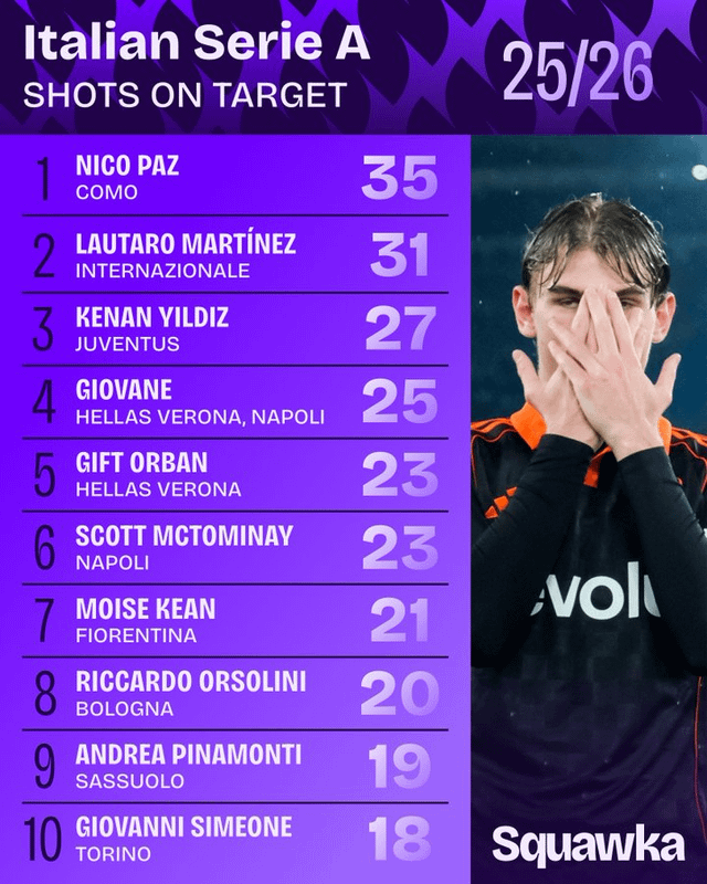 rth9139 on February 6, 2026 8:04 pm It’s actually kind of nuts that a team as bad as Verona has two guys in the top five for shots on target.