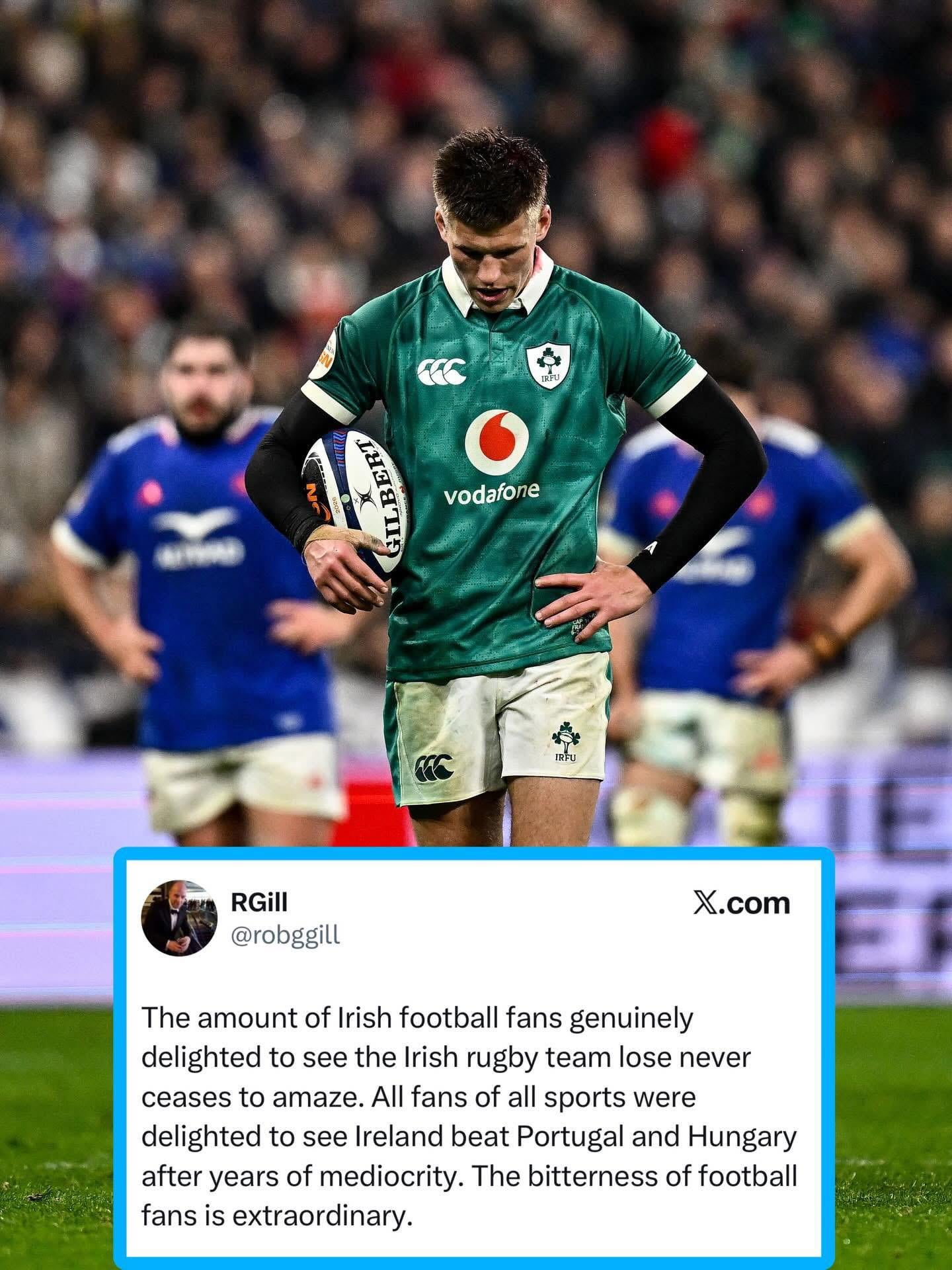 I think it’s different in Ireland as Irish rugby gets more funding than football, so there’s a constant frustration from football fans there and perhaps a chip on their shoulder.
