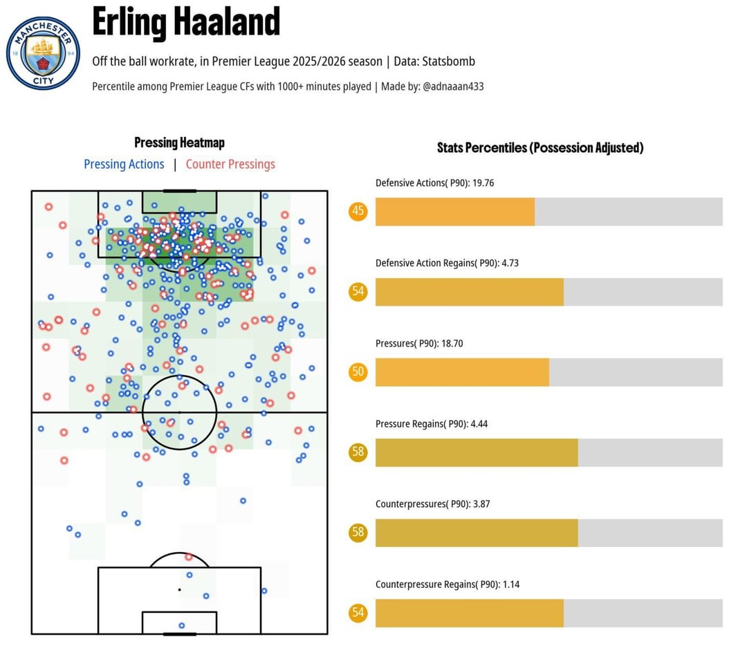 Haaland used to be super criticized for lack of a defensive effort. When did he start putting in a shift? Those numbers aren’t bad