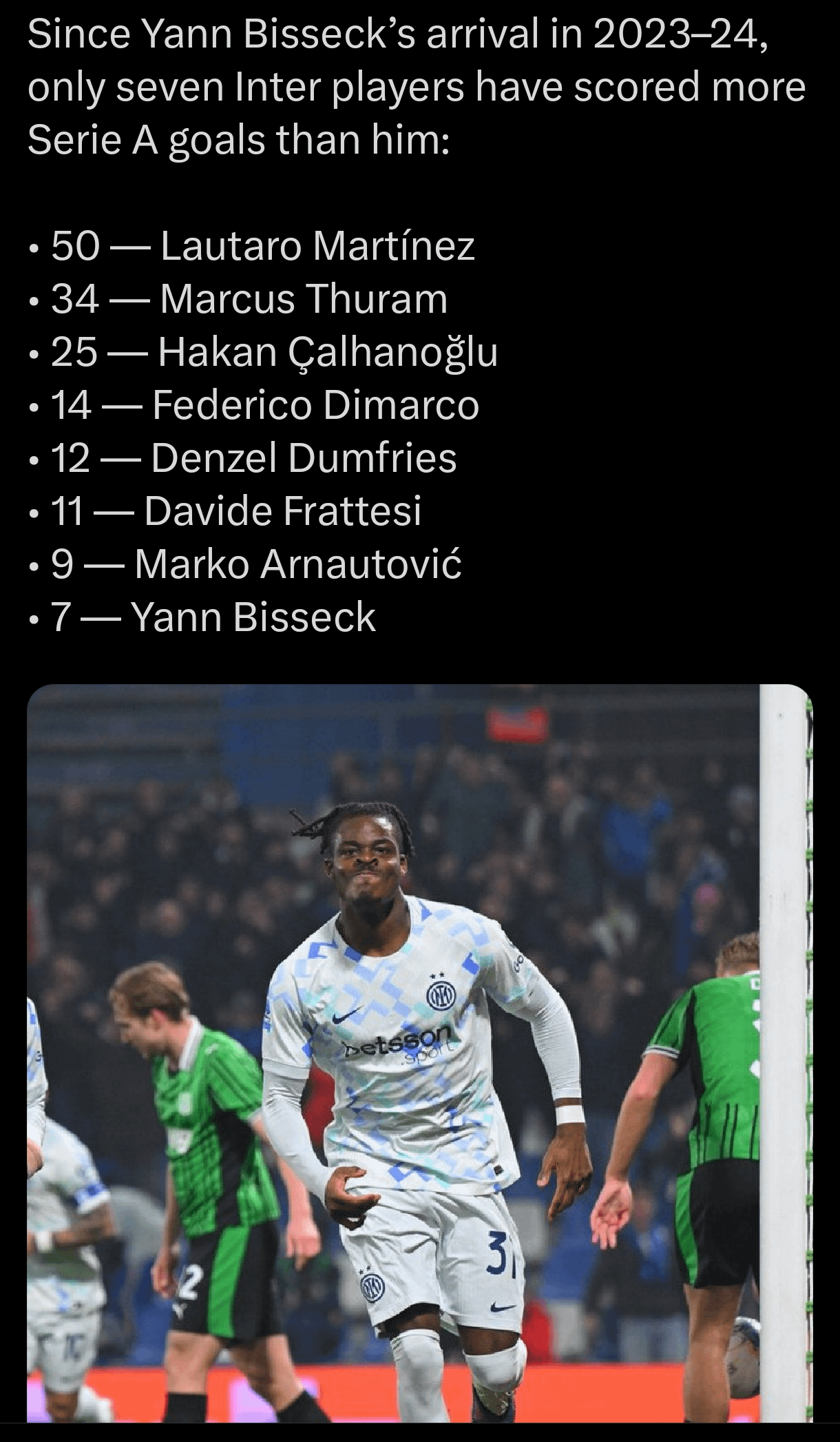 Jokes besides, Bisseck is strong. He does however need to correct his defensive posture, as it is undeniable he gives away penalties too often. I don’t want that we sell him, he still can improve and I don’t mind those headers that get us out of trouble when we can’t score.