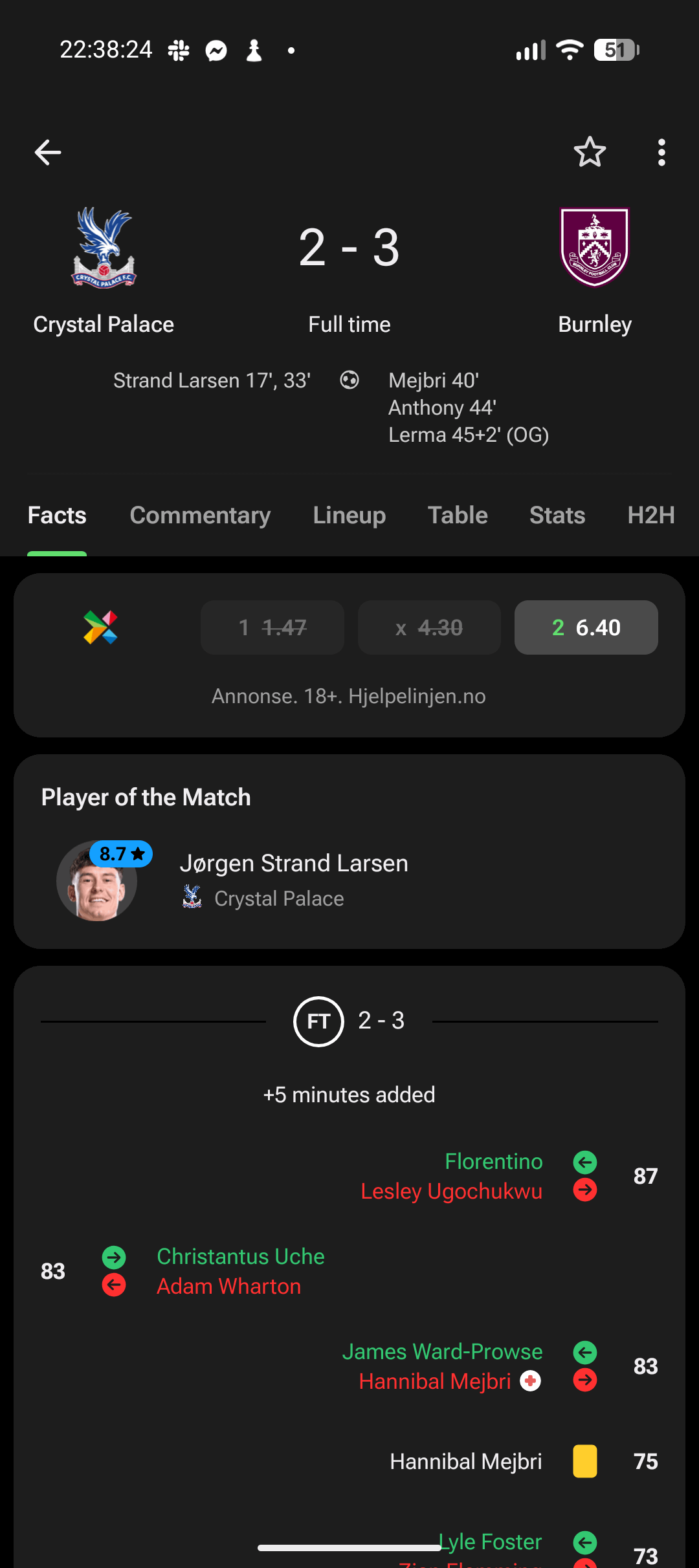 1. “If I had a pound for every occasion Strand Larsen scored in home games against Burnley that ended in 2-3 losses I’d have…two pounds, which isn’t much, but it’s weird that it happened twice”