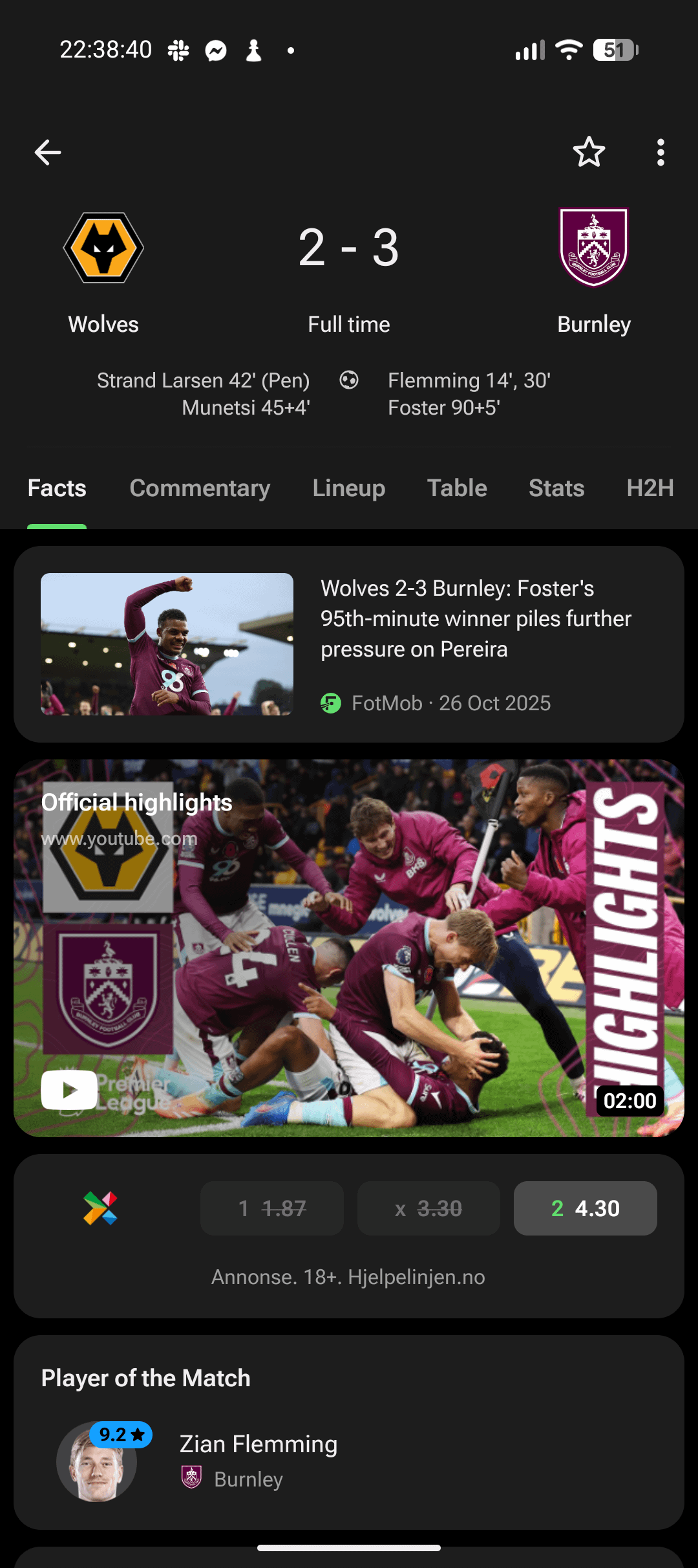 Jørgen Strand Larsen has scored 3 goals so far this PL season, in two separate home games against Burnley. Both ended in 2-3 losses, also being Burnley’s only away wins so far.