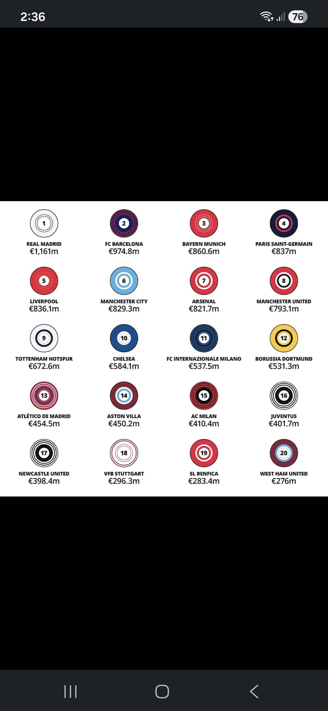 Just saw this come up on LinkedIn and thought it was interesting, names the top teams for revenue in Europe. Juventus is sixteenth, and interesting to see who else made the top 20. Haven't read the whole article in depth just thought it might be interesting to those who like the numbers and stats.
