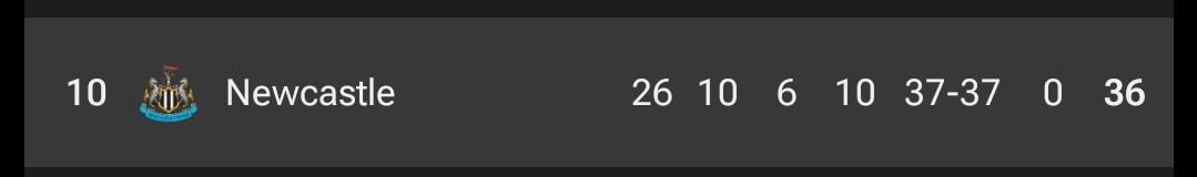 Share Facebook Twitter LinkedIn Pinterest Bluesky Threads Sitting 10th, with 0 GD 10 wins 10 losses. I mean its fine but so average haha. by Notove newcastle united newcastle united football club