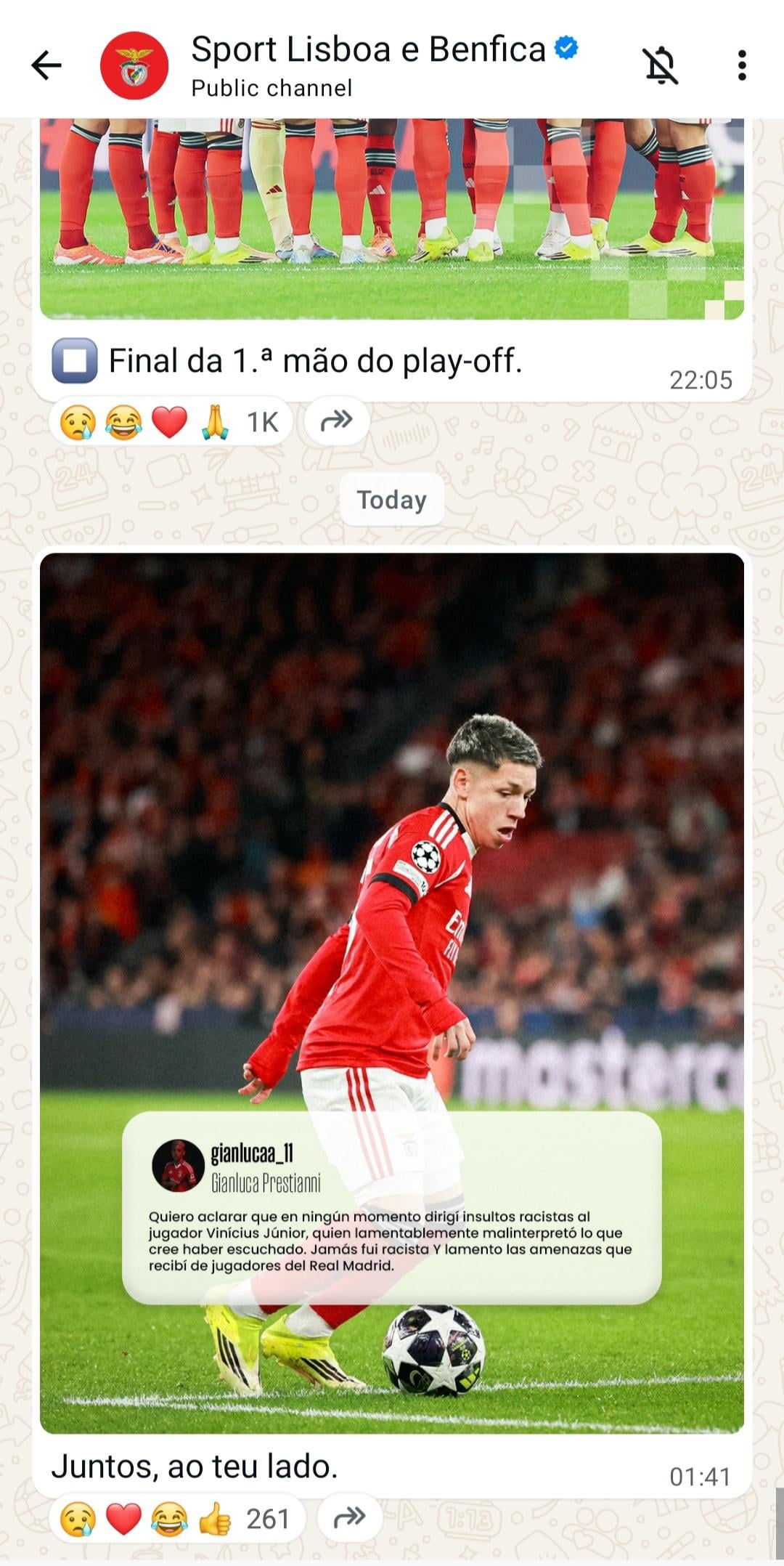 Mensagem horrível. Somos de facto exímios em tiros nos pés. O que vale é que iremos sair da champions muito provavelmente, aquela do Valverde é um prenúncio de que não vamos passar de forma alguma. Tem de ser averiguado com o Prestianni mas vai ser extremamente difícil pois será um “diz que não diz”. Acredito no inocente até prova em contrário, no entanto, é difícil dissociar a sucessão de acontecimentos, o histórico dos jogadores argentinos, etc etc. Enfim.