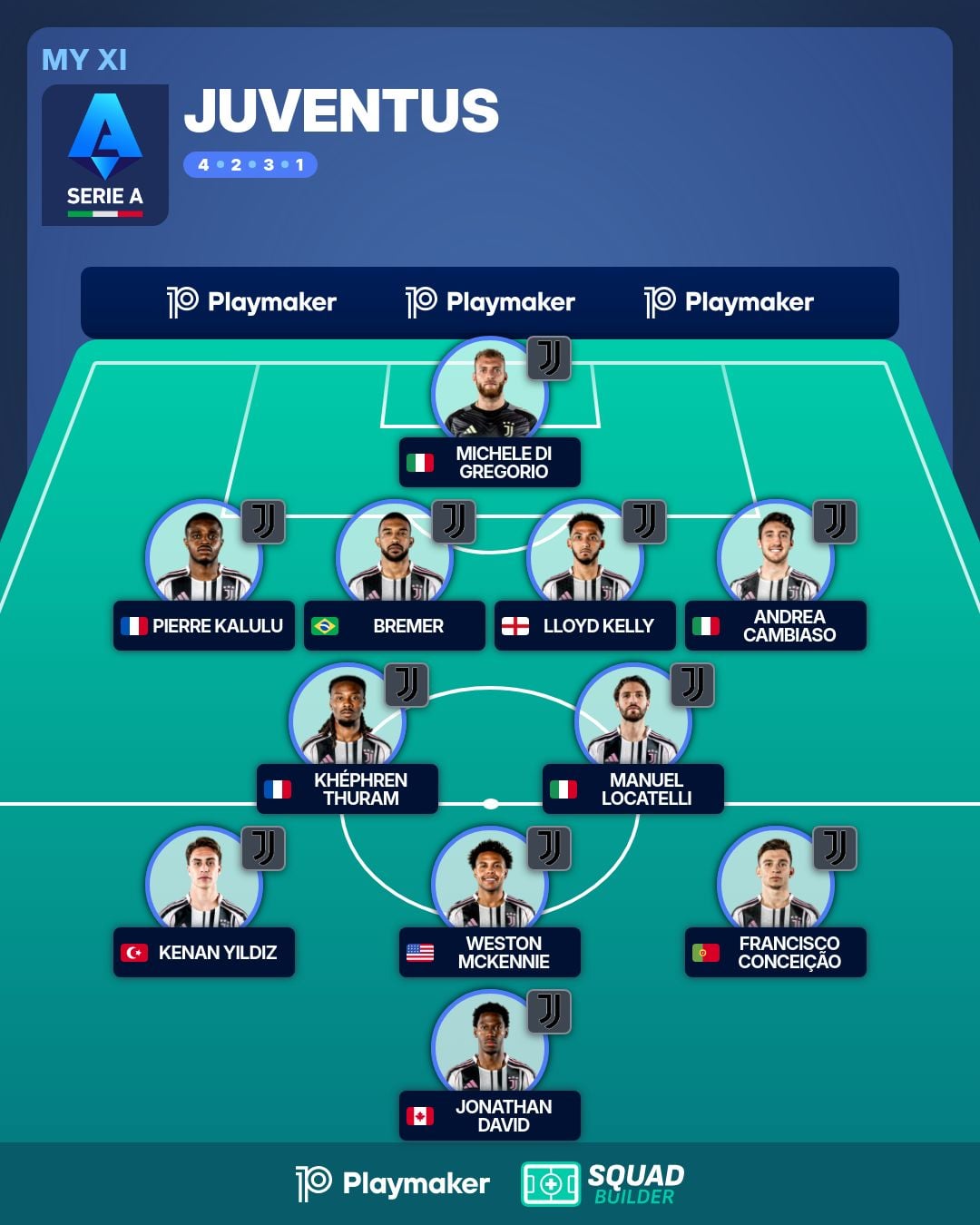 Everything from the cautious one, plus at least one “big” sale for each role. Di Gregorio out, Bremer out, Thuram out, Conceicao out.