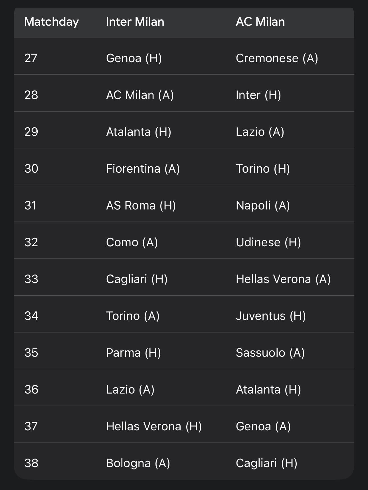 Atalanta and Roma at home already give me a comfort at the very least..