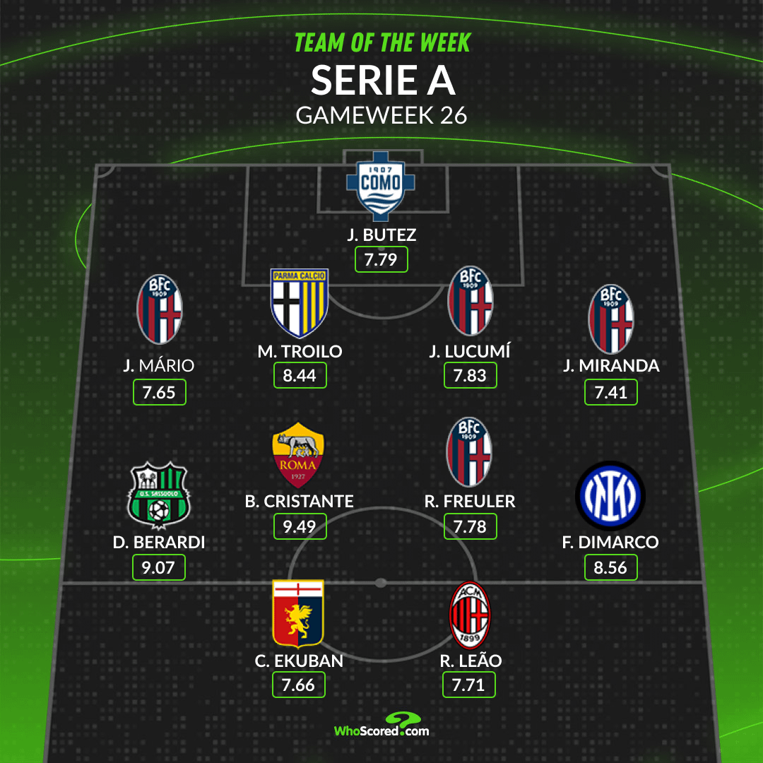 Share Facebook Twitter LinkedIn Pinterest Bluesky Threads Serie A Team of the Week by OfficialWhoScored football Italian Football Italian Football Championship Italy serie a Soccer