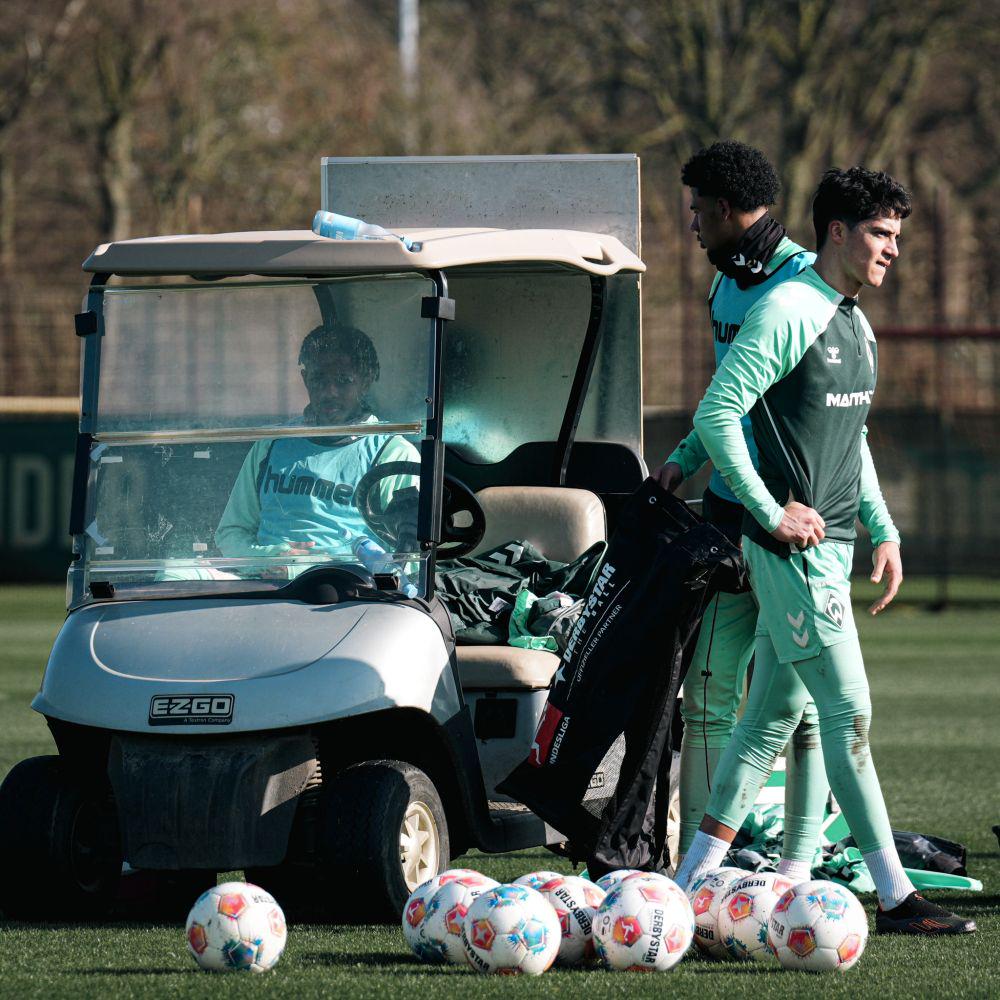 Samuel Mbangula musste die heutige Einheit verletzungsbedingt abbrechen und hat am Donnerstag einen MRT-Termin. by PiggySVW bundesliga football fußball german bundesliga Germany Soccer