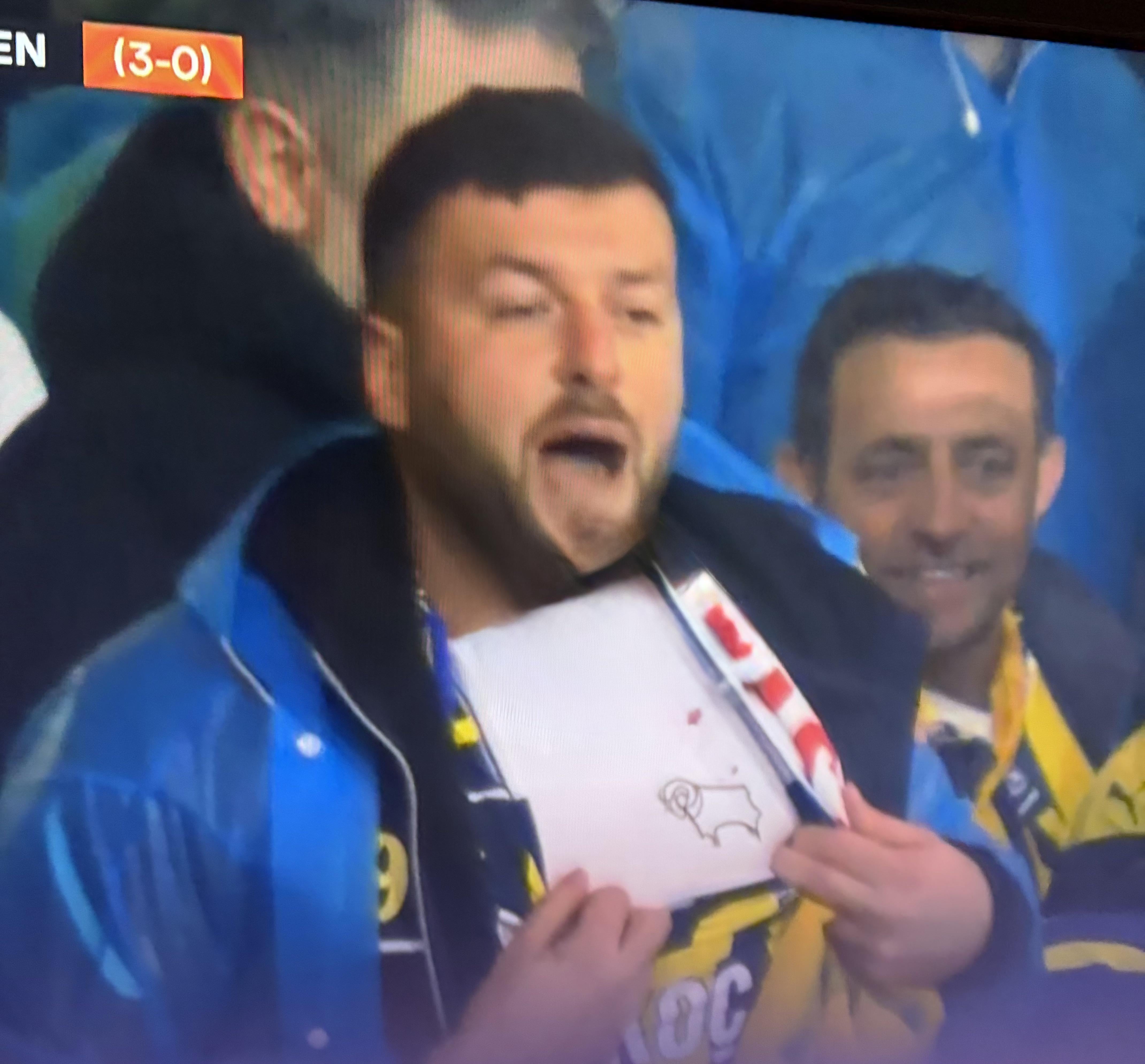 I don’t know if this guy also supporting Derby, or him going out of his way to get a Derby shirt for this specific game is funnier honestly. A+ shithousing though