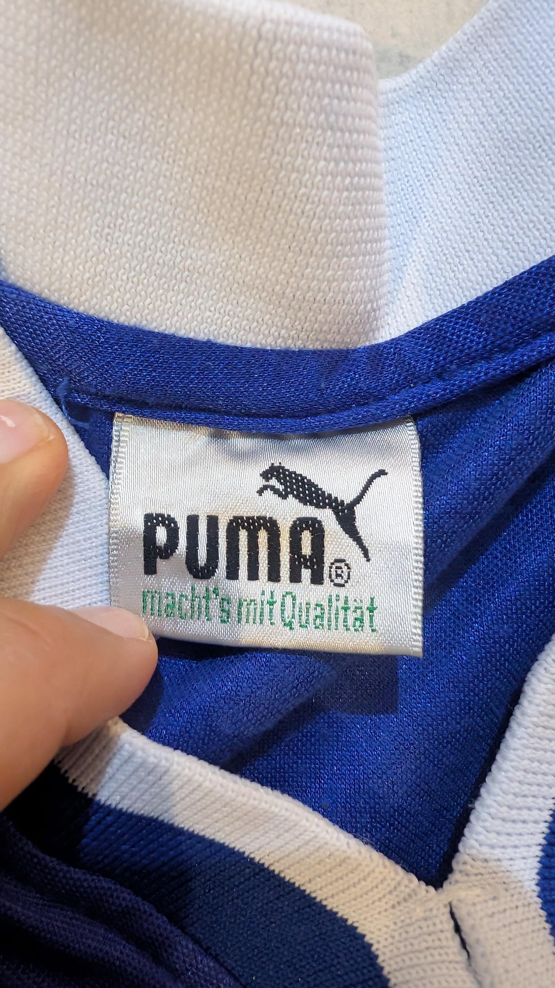 The Puma logo and inside neck tag are heat pressed on the UK version. I’d say it’s authentic but not the UK version