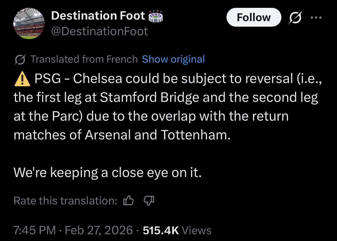 Have one on the Tuesday and the other on the Wednesday. Wouldn’t be fair for Chelsea to lose the advantage of a home second leg
