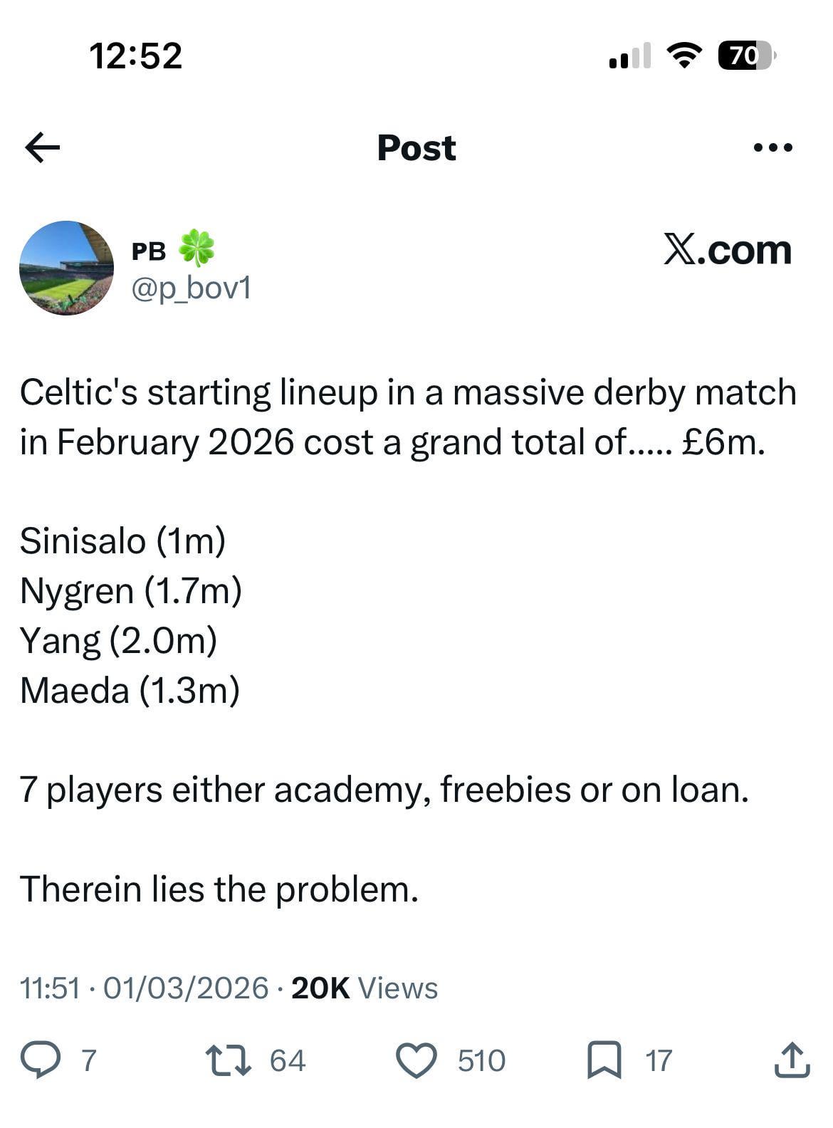 Yeah, actually. That is the problem. They’ve paid more for one bang average striker who has all his goals against two teams.